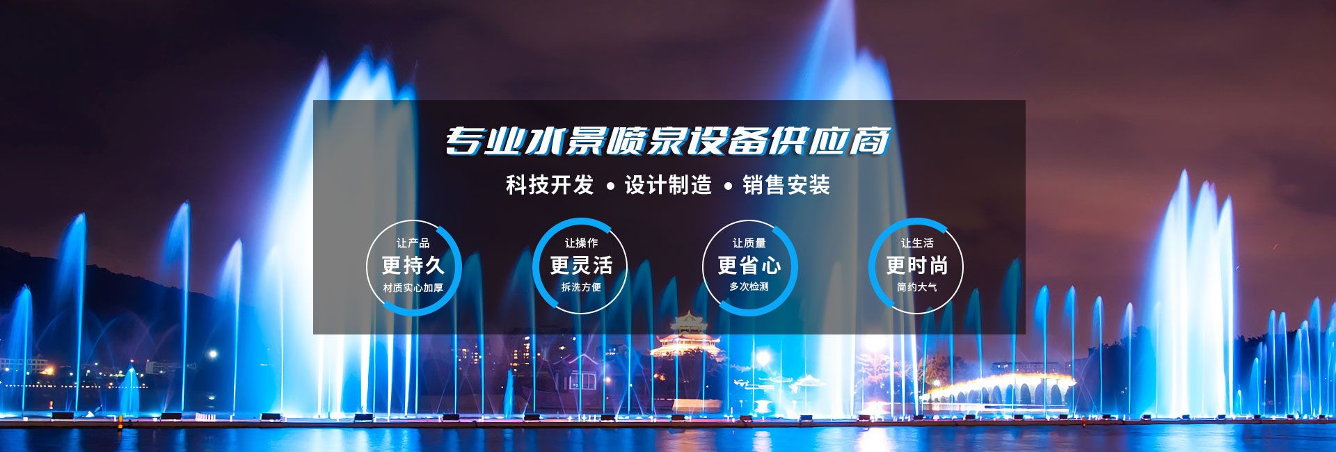 無錫市水舞秀環(huán)境工程有限公司,位于美麗的太湖之濱,著名的陶都--宜興。342省道附近,交通十分便利。本公司立志于弘揚(yáng)水文化,做好水文章,使噴泉水景集聲、光、水三維一體,營造出更奇、更新、更美的人文景觀。公司在全國承接了大型音樂噴泉、程控噴泉、旱式程控噴泉等大型工程,從工程設(shè)計到制作、安裝、調(diào)試,提供一整套完善的服務(wù)體系只要客戶想到,我們一定能做到、做好。水舞秀噴泉匯聚了噴泉界一批有名望的設(shè)計專家,培養(yǎng)和造就了一大批富有實際經(jīng)驗,誠實守信、吃苦耐勞的高素質(zhì)員工隊伍...